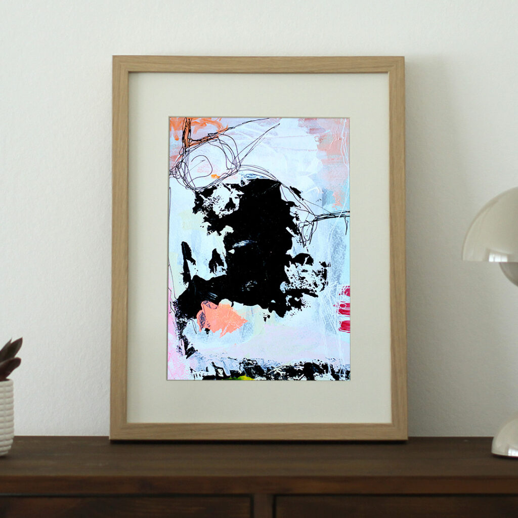 Original acrylic painting on paper with passepartout in a nice deep frame, which is made of wood fiber with paper foil. The front is made of plastic, which makes it safe to use. Steel suspension included.