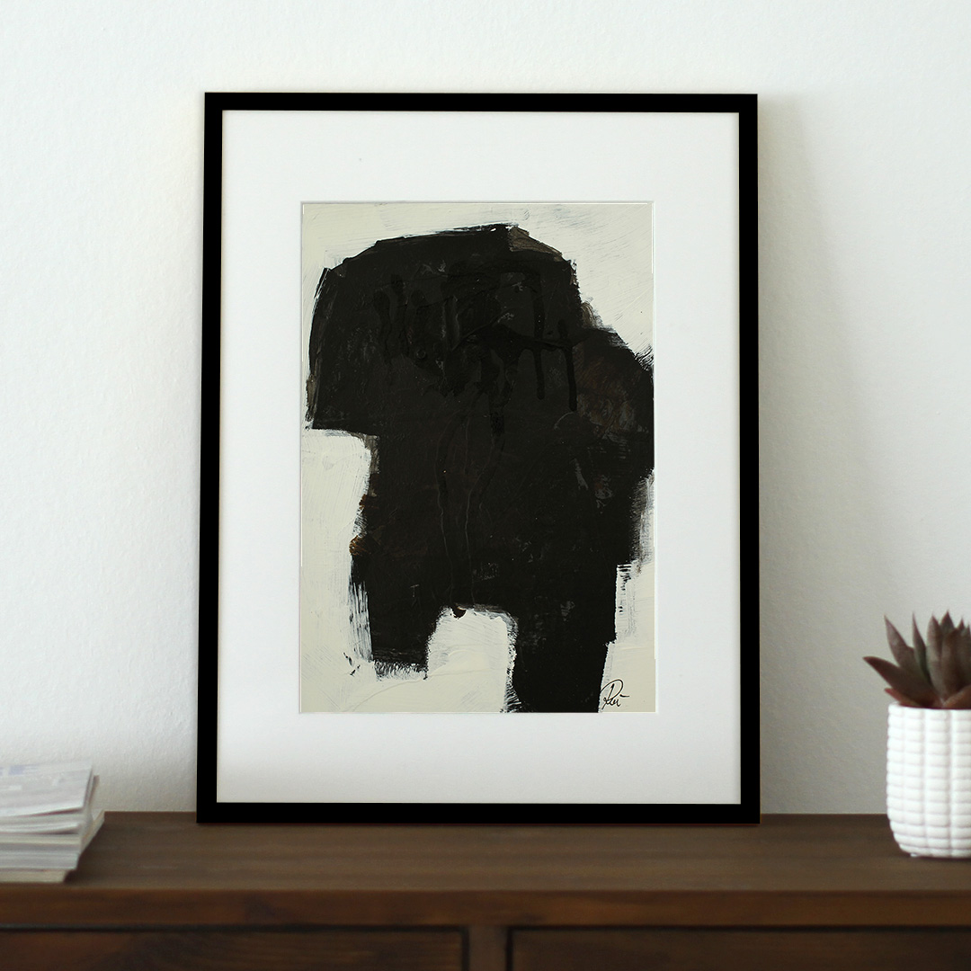 Original acrylic painting on paper with passepartout in a recycled wooden frame. The front is glass. Hanging brackets are attached to the edges on the back of the frame. To be used with hanging wire.