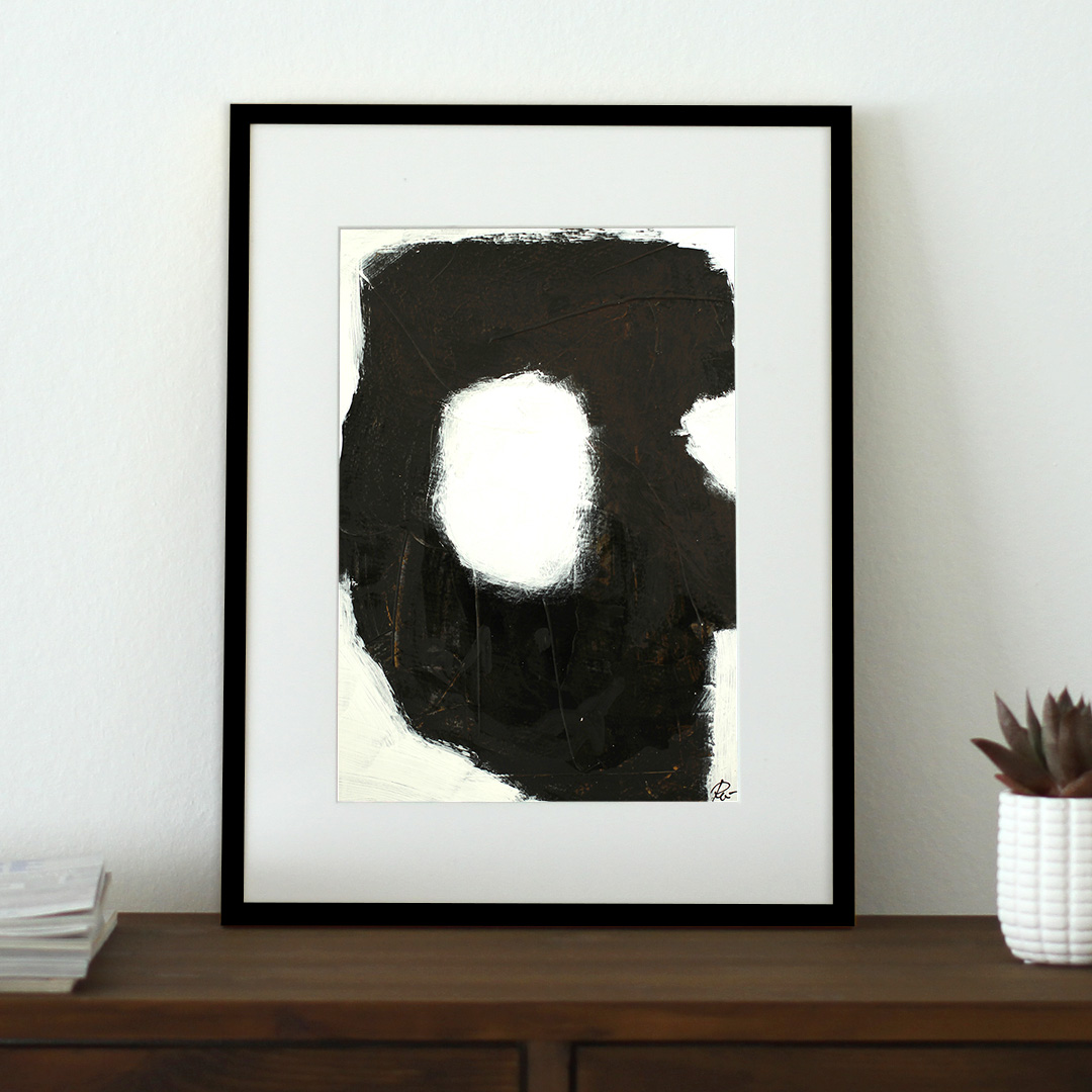 Original acrylic painting on paper with passepartout in a recycled wooden frame. The front is glass. Hanging brackets are attached to the edges on the back of the frame. To be used with hanging wire.