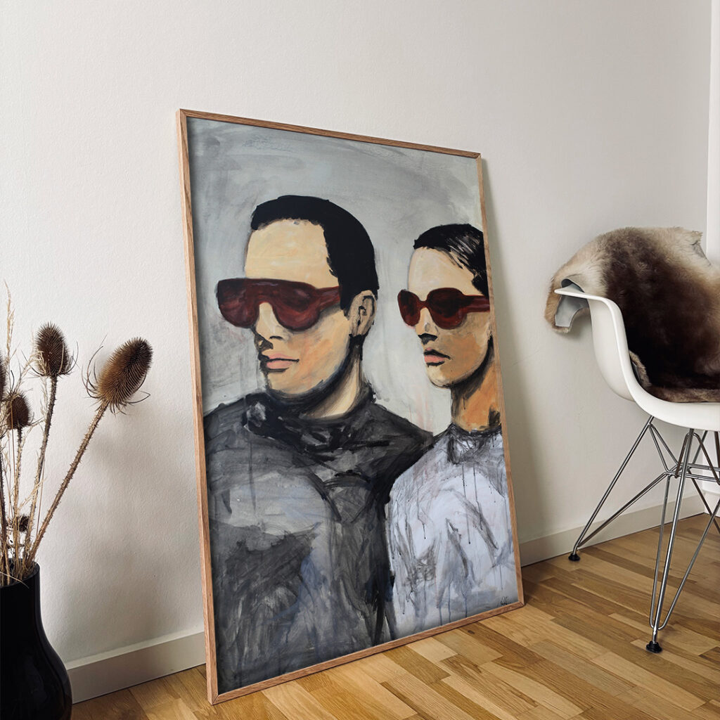 Original acrylic painting on paper in a beautiful oak frame. The front is made of crystal clear shatter-free acrylic glass, which makes it safe to use. Bracket for hook on the back.