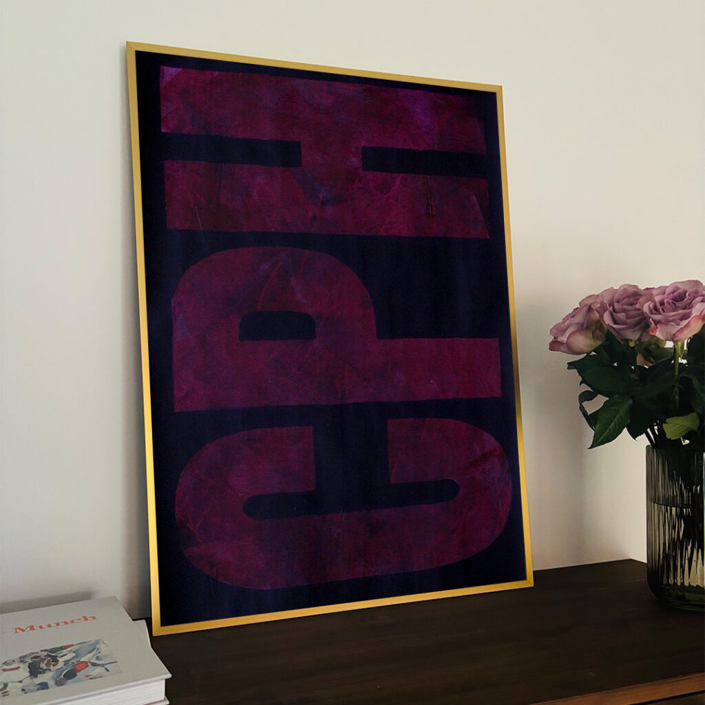 Original acrylic painting on paper in a beautiful brass-colored aluminum frame. The front is made of plastic, which makes it safe to use. Bracket for hook on the back.