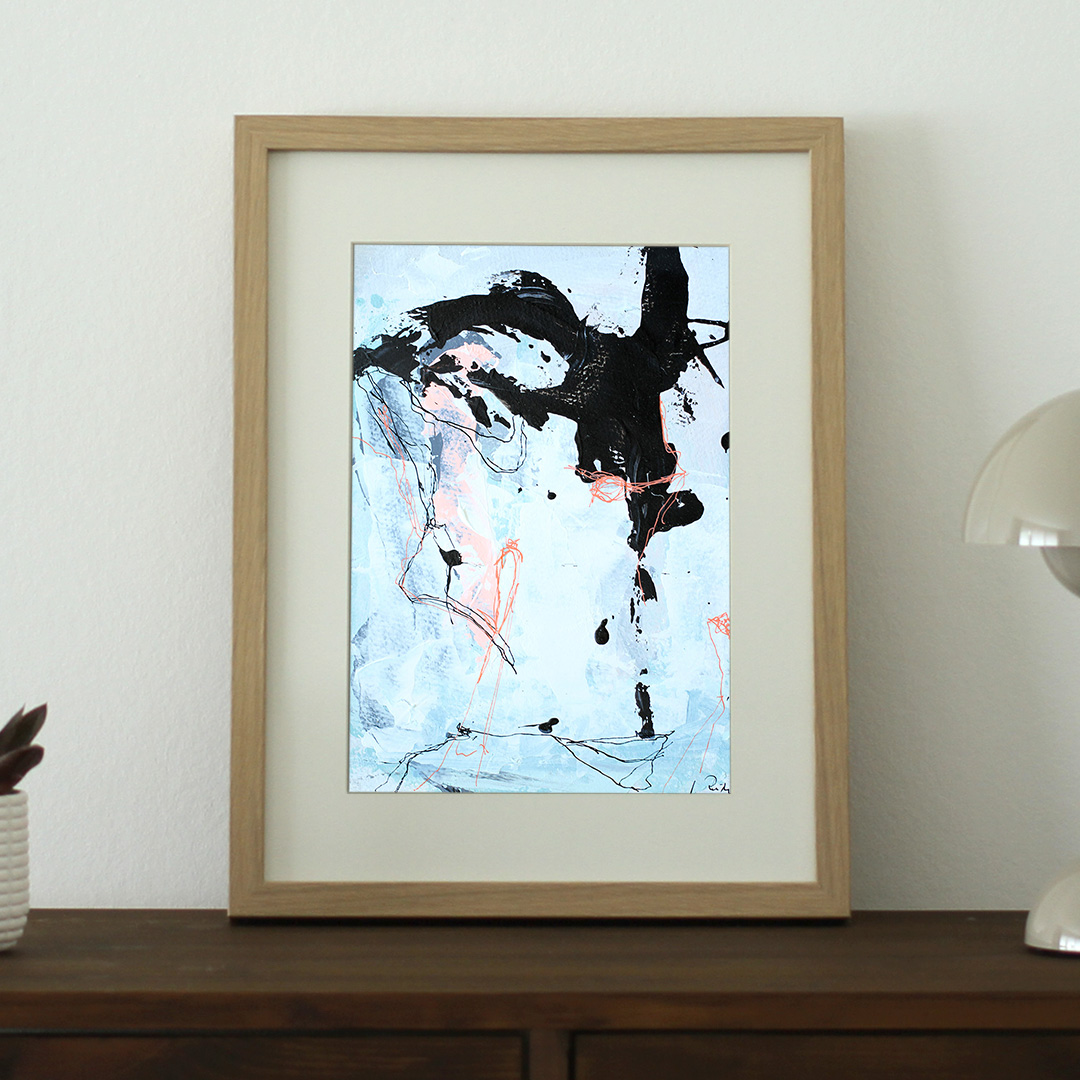 Original acrylic painting on paper with passepartout in a nice deep frame, which is made of wood fiber with paper foil. The front is made of plastic, which makes it safe to use. Steel suspension included.