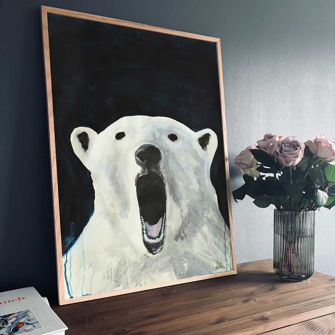 Original acrylic painting on paper in a beautiful oak frame. The front is made of crystal clear shatter-free acrylic glass, which makes it safe to use. Bracket for hook on the back.