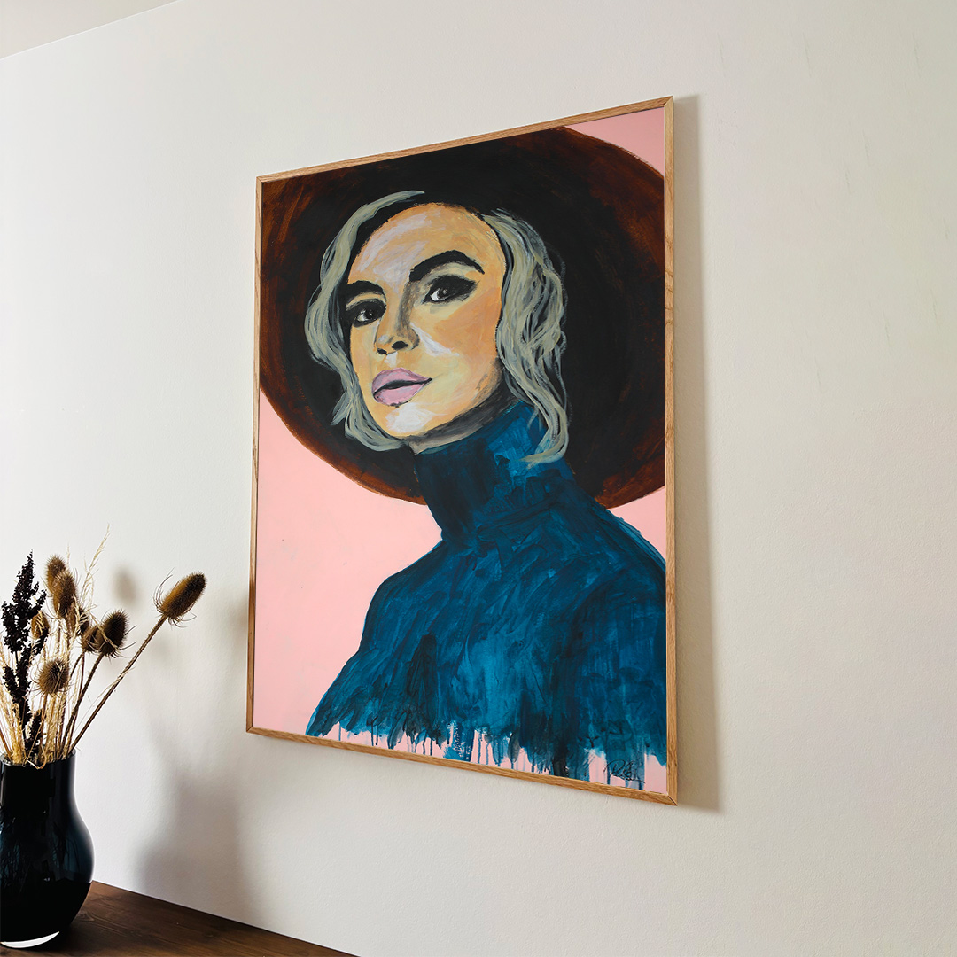 Original acrylic painting on paper in a beautiful oak frame. The front is made of crystal clear shatter-free acrylic glass, which makes it safe to use. Bracket for hook on the back.