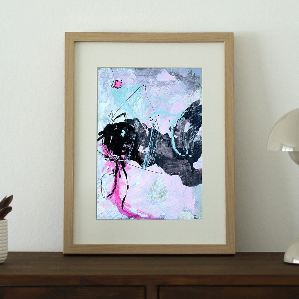 Original acrylic painting on paper with passepartout in a nice deep frame, which is made of wood fiber with paper foil. The front is made of glass. Steel suspension included.